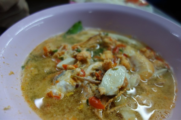 コブミカンの葉とキノコとエビと生姜とココナツを惜しげもなく突っ込んでいた。スープの濁ったような部分はこれすべて蝦仔。この一杯で、トムヤムクンの概念は確実に変わる。